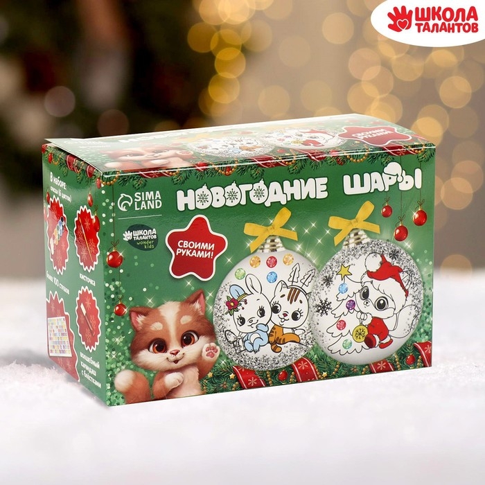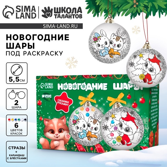 Ёлочные шары под раскраску на новый год «Волшебство Нового года», 2 шт, новогодний набор для творчества