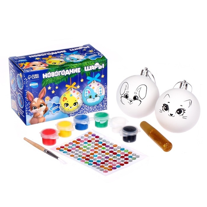 Ёлочные шары под раскраску на новый год «Зимнее чудо», 2 шт, новогодний набор для творчества