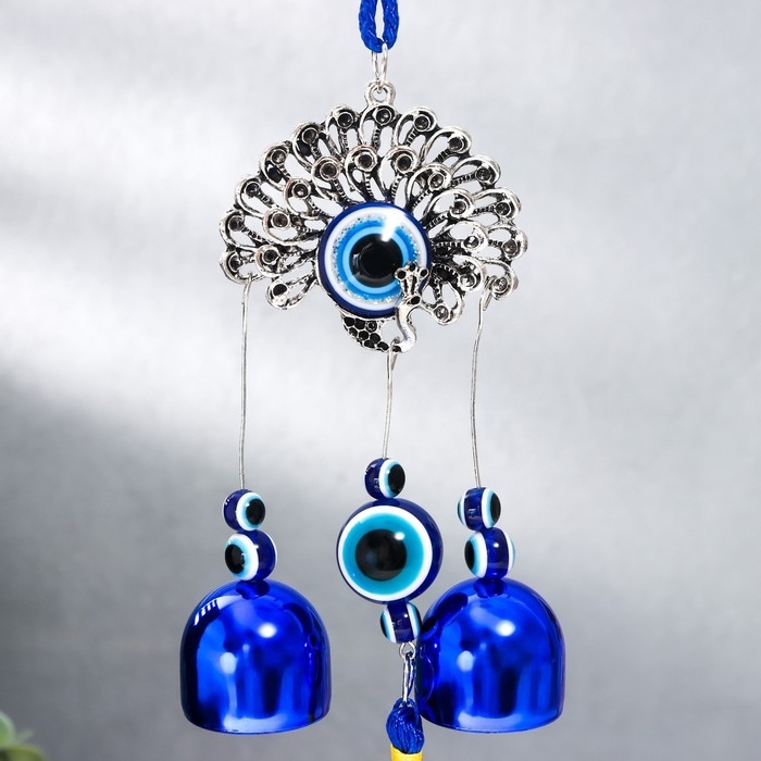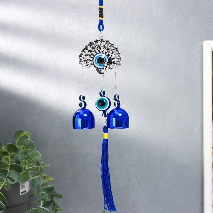 Музыка ветра металл "Павлин" от сглаза с кисточкой 2 колокольчика 22х6,5 см