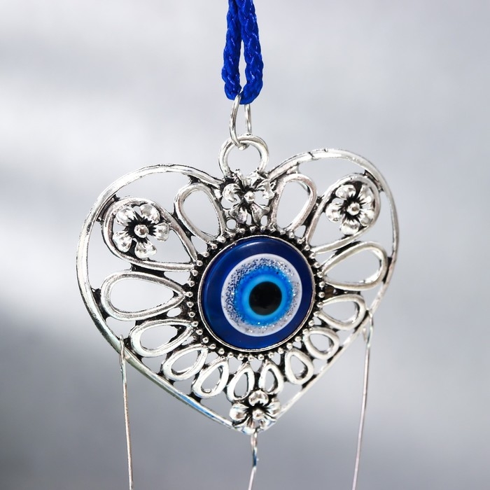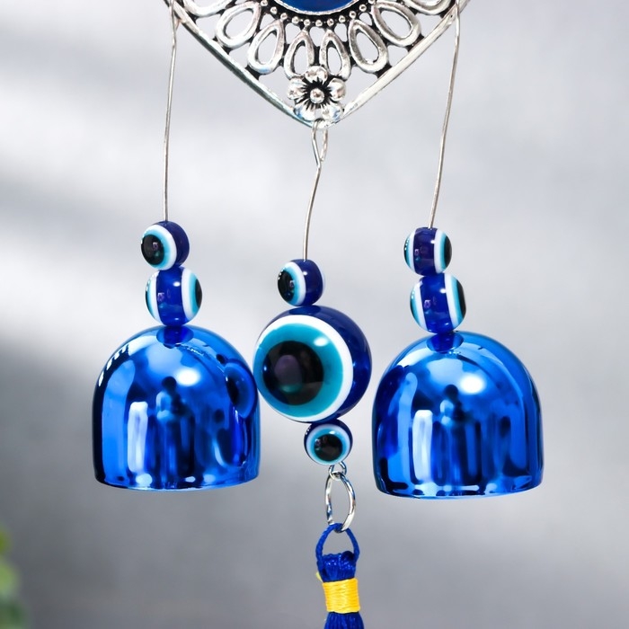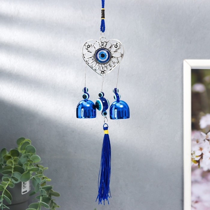 Музыка ветра металл "Сердце" от сглаза с кисточкой 2 колокольчика 22х6,5 см