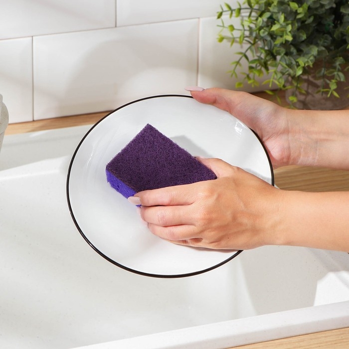 - Яркий дизайн: фиолетовый цвет губок придаст вашей кухне свежести и оригинальности.