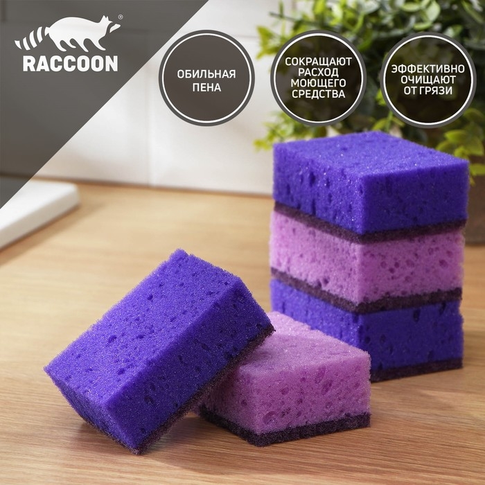 Набор губок для мытья посуды Raccoon «Версаль», 5 шт, 9×6,5×3,5 см, крупнопористый поролон, цвет фиолетовый