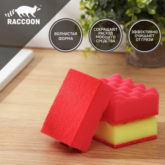 Набор губок для мытья посуды Raccoon «Кантри», 3 шт, 9,5×7×3,5 см, цвет красный, жёлтый