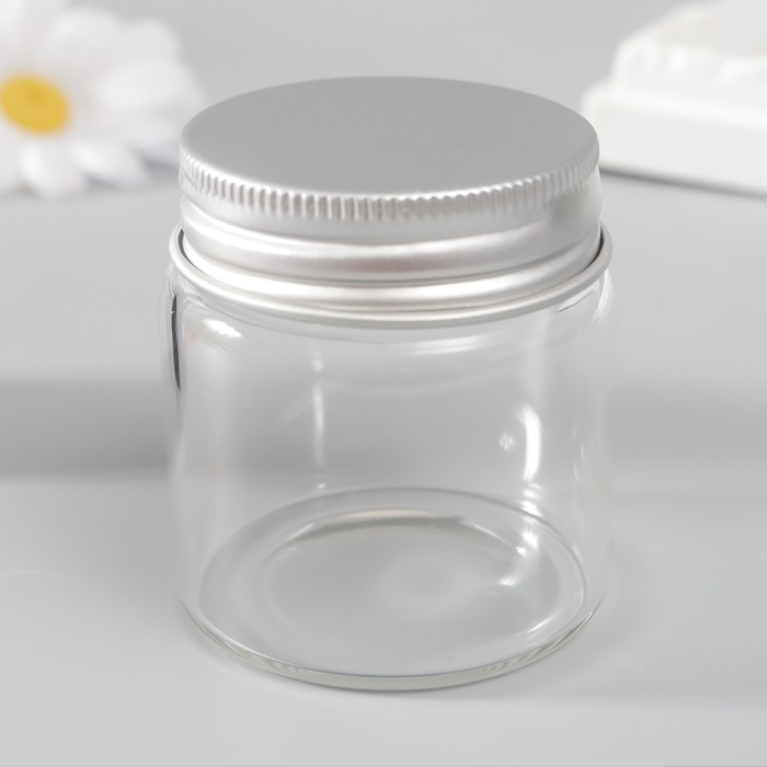 Декор для творчества стекло "Баночка с крышкой" серебро 4,7х4,7х5 см
