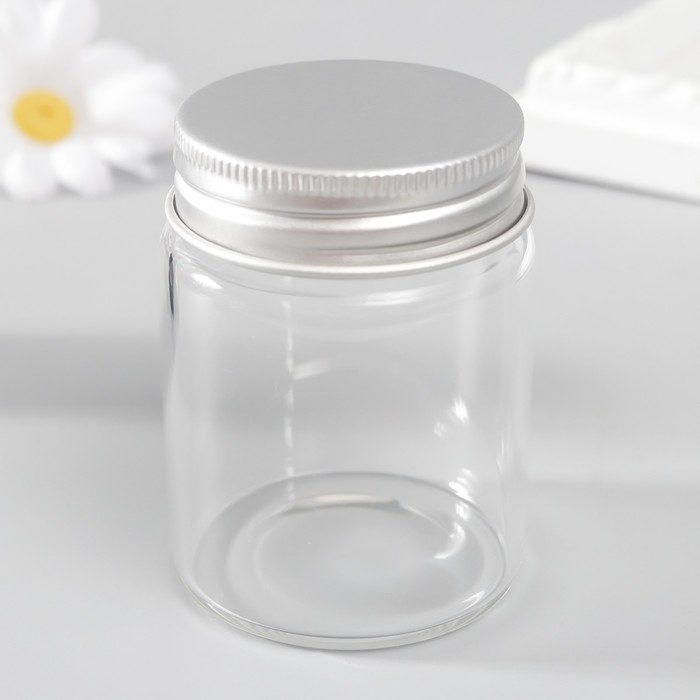 Декор для творчества стекло "Баночка с крышкой" серебро 4,7х4,7х6 см