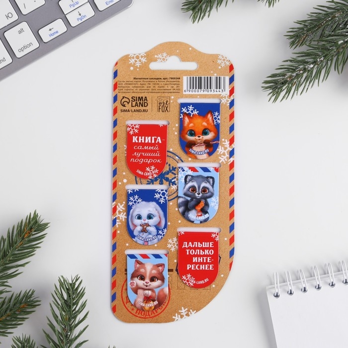 Новый год. Закладки для книг магнитные «Новогодняя почта», 6 шт
