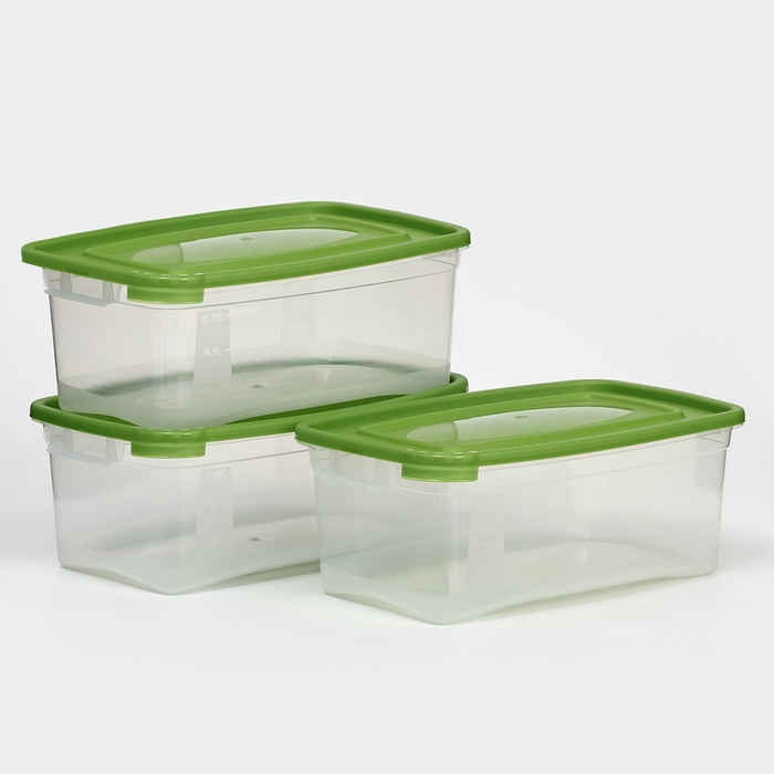 Набор контейнеров пищевых Доляна, 3 шт: 1 л, 18,5×12×7 см, прямоугольные, прозрачные, крышка зелёная
