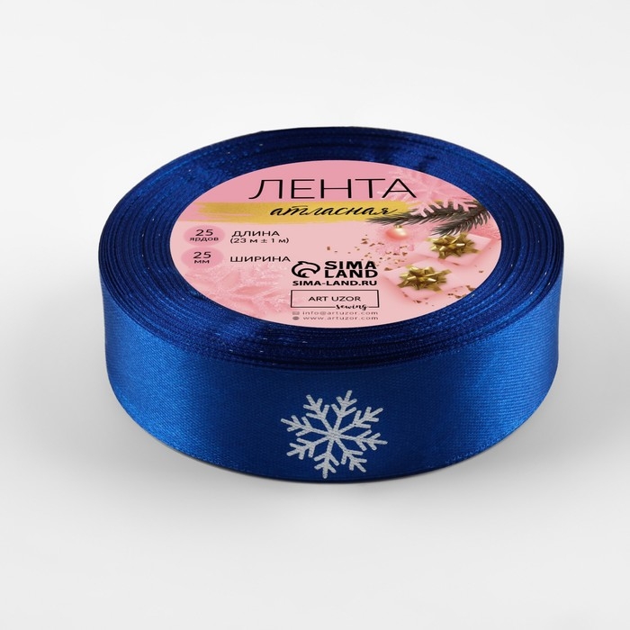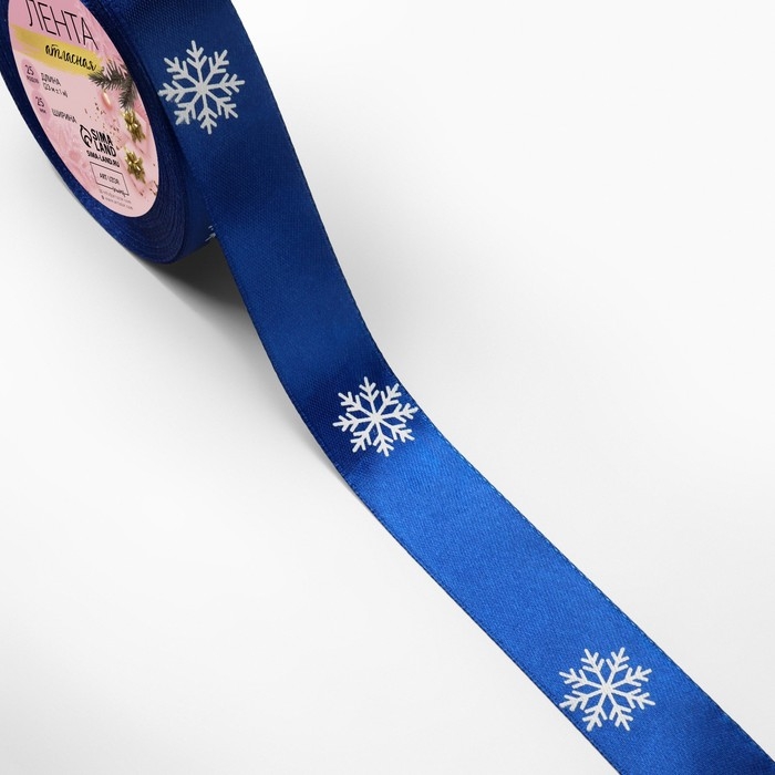 Новый год! Лента атласная «Снежинки», 25 мм, 23 ± 1 м, цвет синий/белый №122