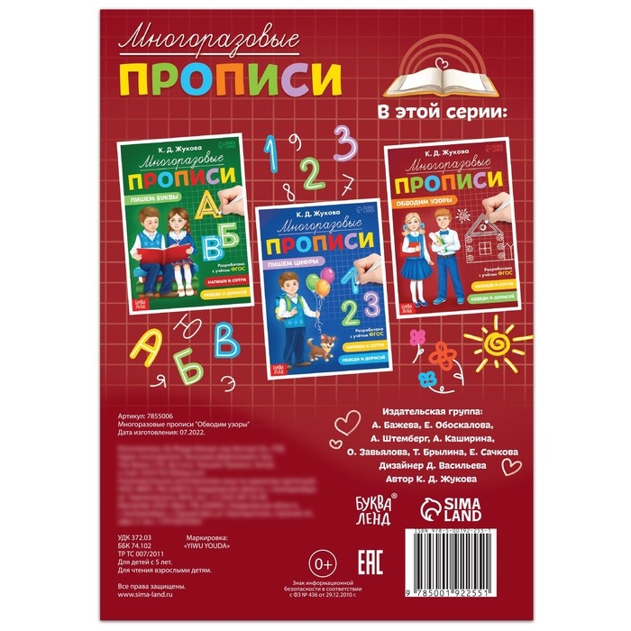 Серия многоразовых прописей разработана с учётом требований ФГОС. Занимаясь по ним, ребёнок сможет подготовиться к школе.
