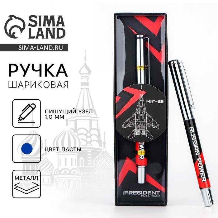 Ручка металл с колпачком «Russian Power», фурнитура серебро, 1.0 мм