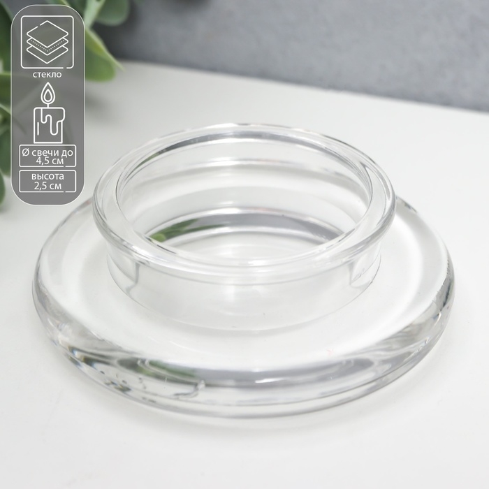 Подсвечник стекло на 1 свечу "Анта" d-4,5 см прозрачный 8,5х8,5х2,5 см