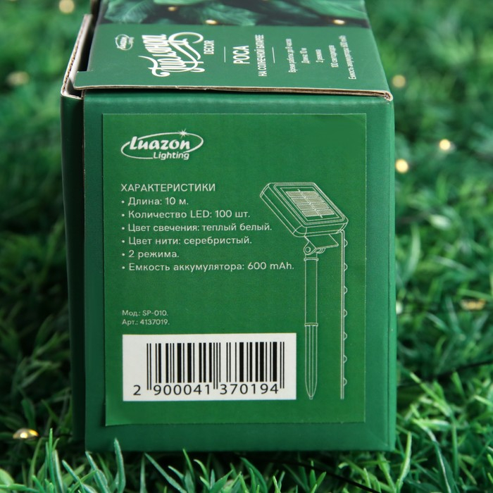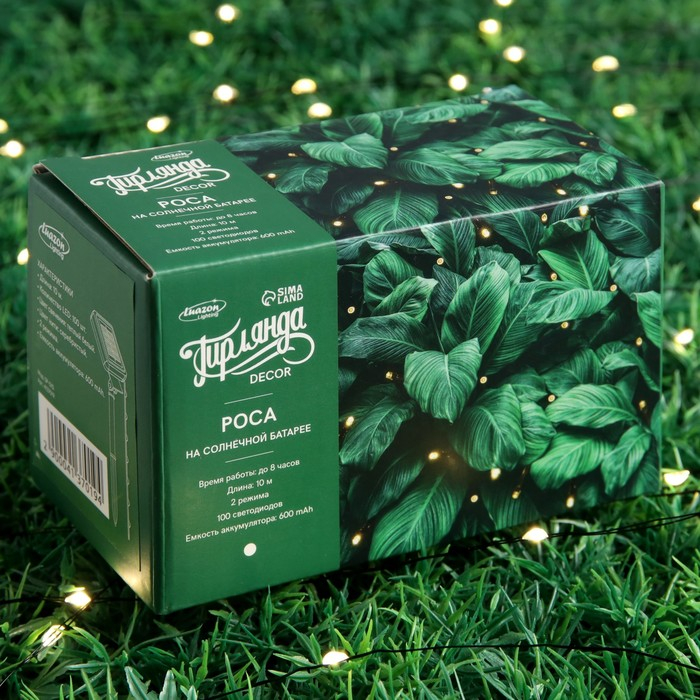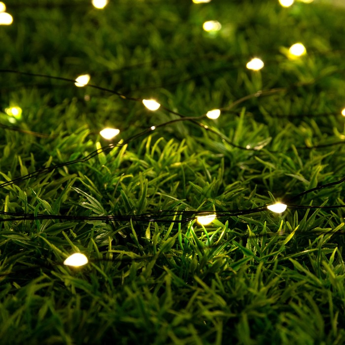 Гирлянда «Нить» 10 м роса, IP44, серебристая нить, 100 LED, свечение тёплое белое, 2 режима, солнечная батарея