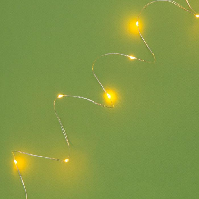 Гирлянда «Нить» 10 м роса, IP44, серебристая нить, 100 LED, свечение тёплое белое, 2 режима, солнечная батарея