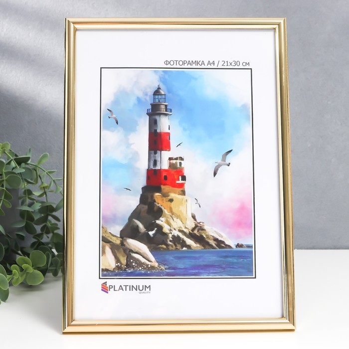 Фоторамка пластик "Палитра" 21х30 см, золото, с ножкой