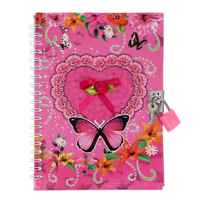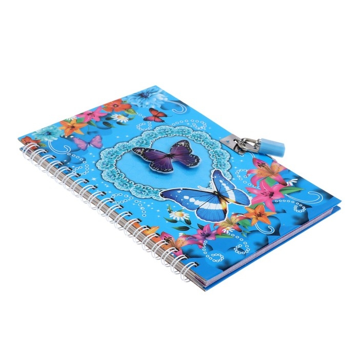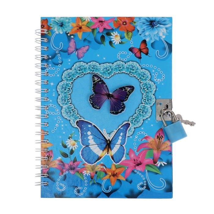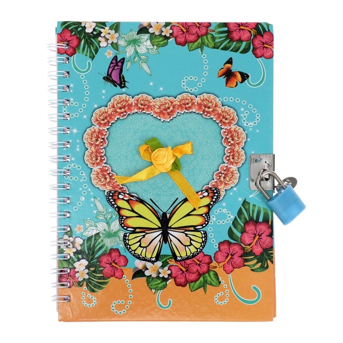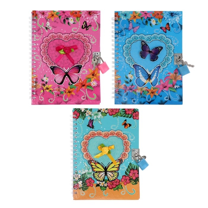 Записная книжка подарочная на замочке, А6+, 50 листов, линия, "Бабочка", МИКС