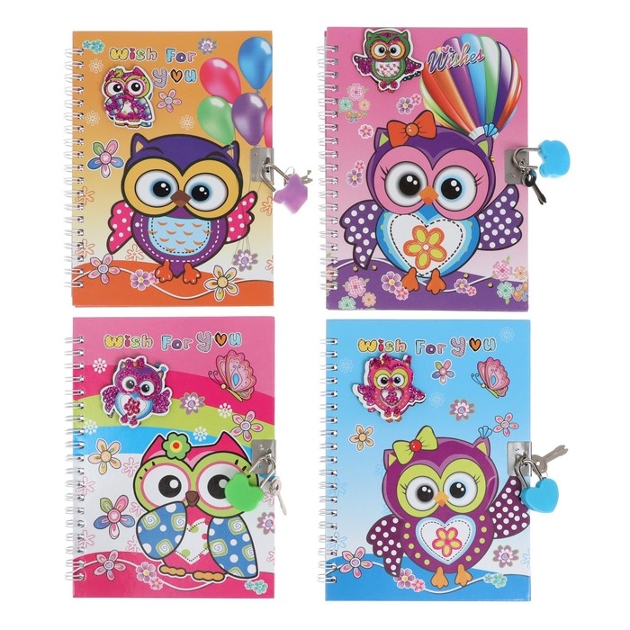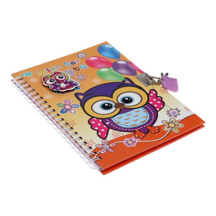 Записная книжка подарочная на замочке, А6+, 50 листов, линия, "Совушка", МИКС