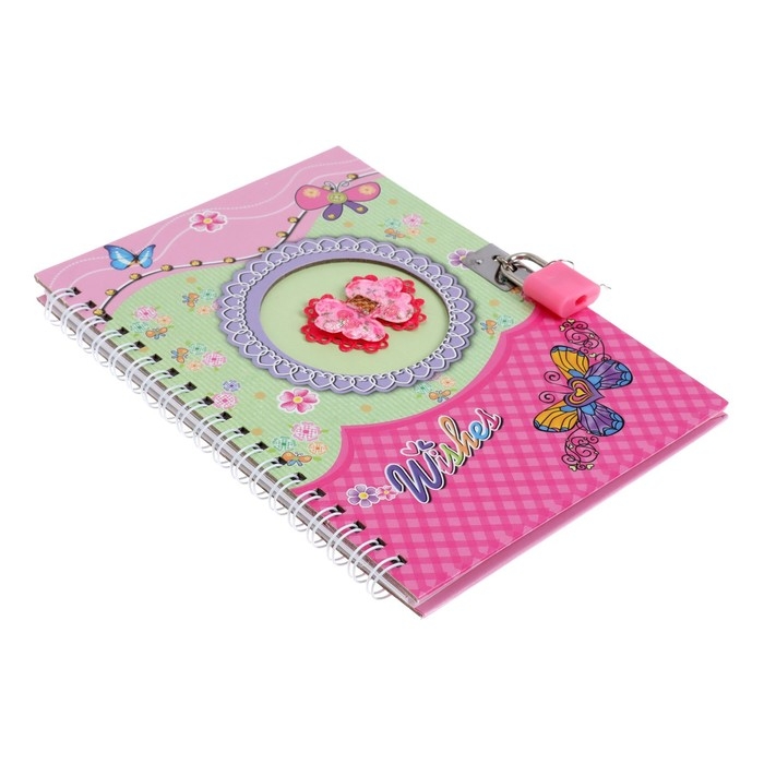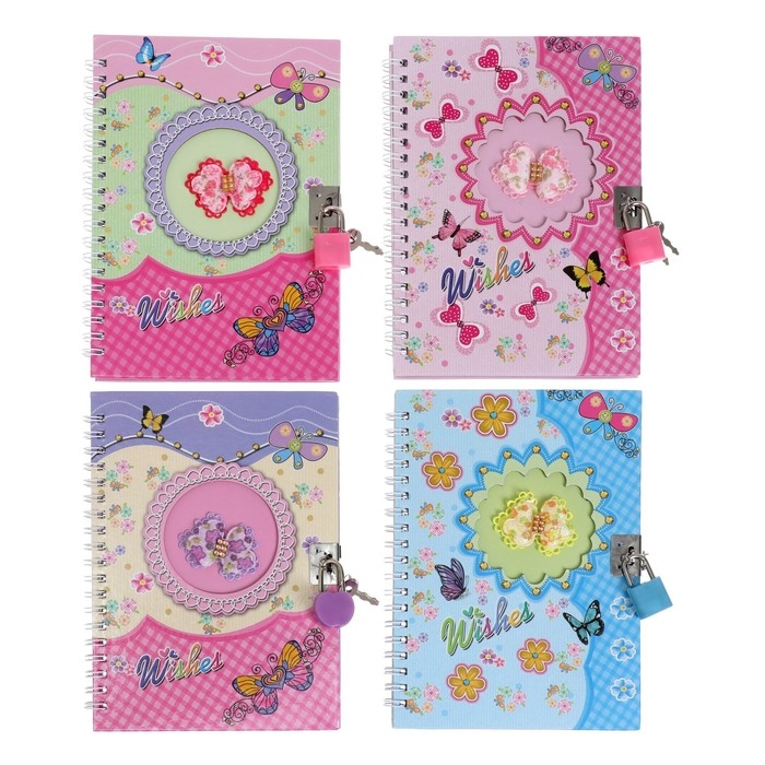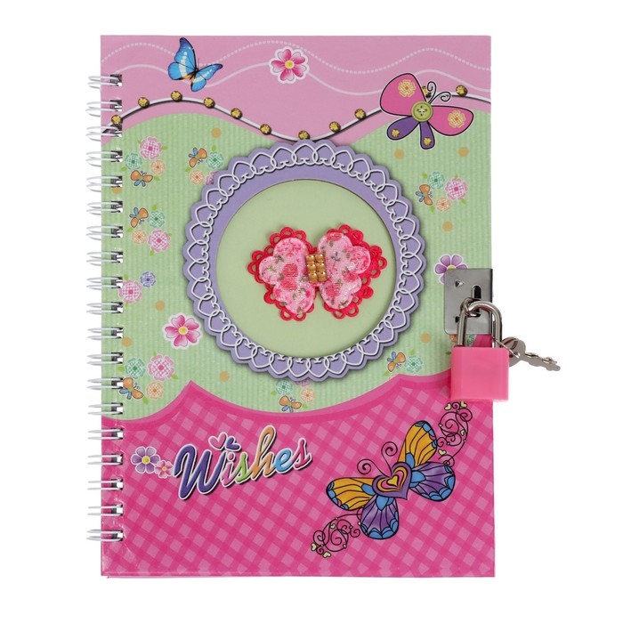Записная книжка подарочная на замочке, А6+, 50 листов, линия, "Бабочка", МИКС