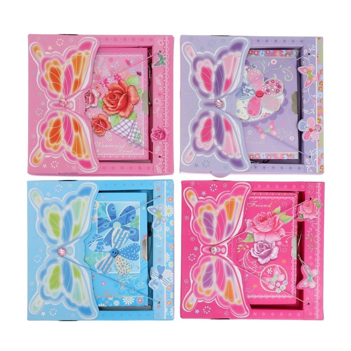 Записная книжка в подарочной коробке, на замочке, А6, 50 листов, линия, "Бабочка", МИКС