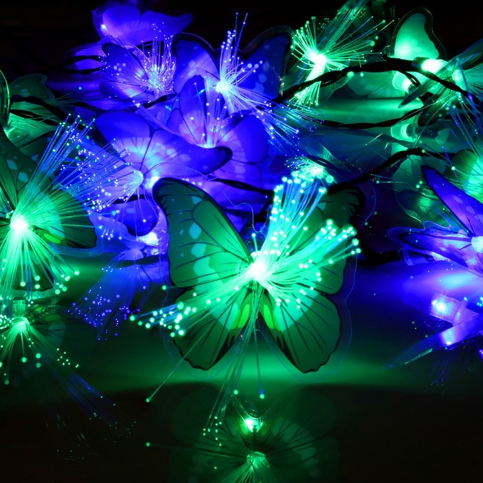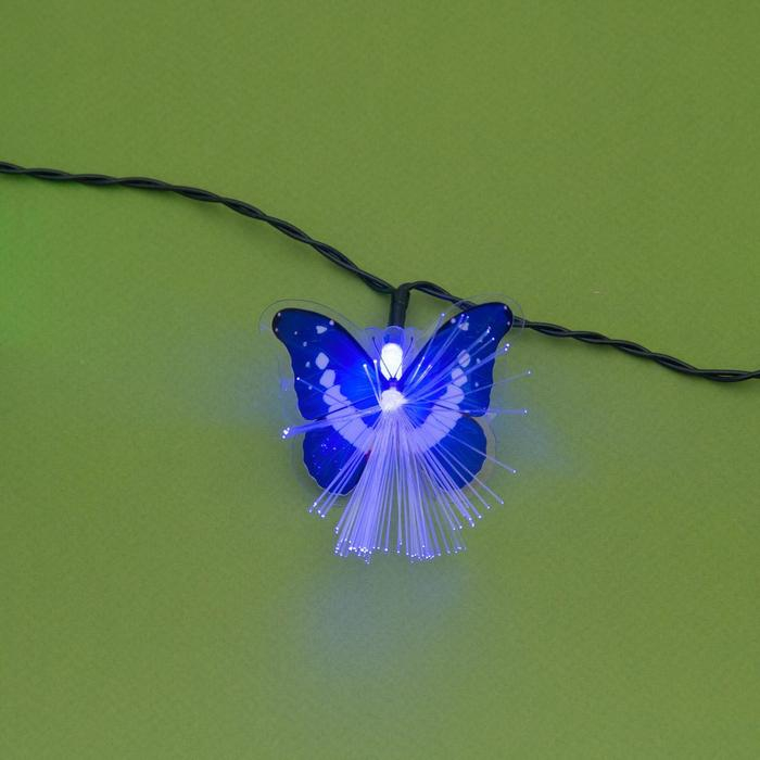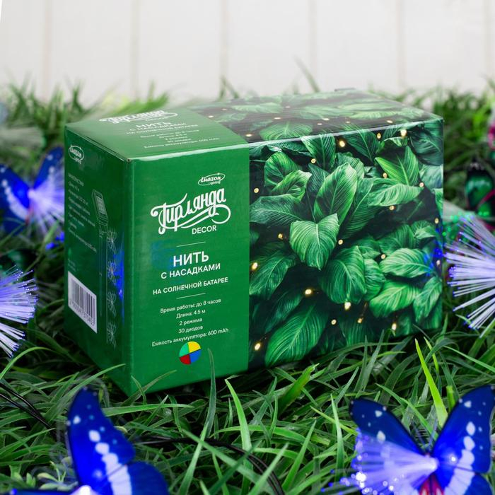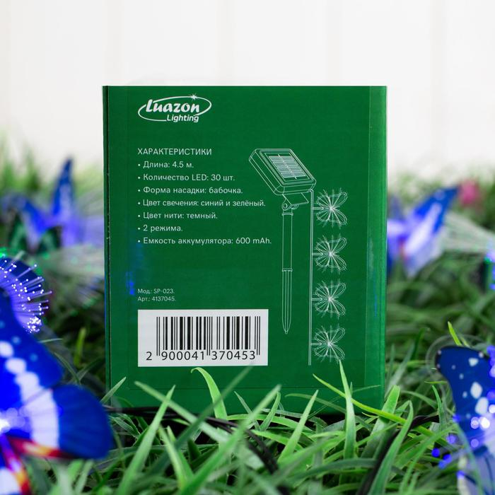 Гирлянда «Нить» 4.5 м с насадками «Бабочки», IP44, тёмная нить, 30 LED, свечение синее/зелёное, 2 режима, солнечная батарея