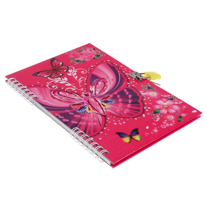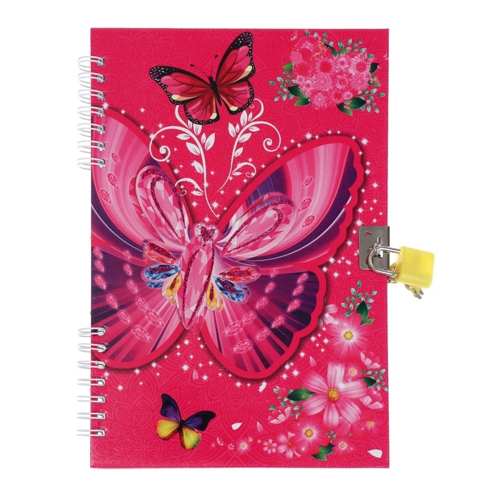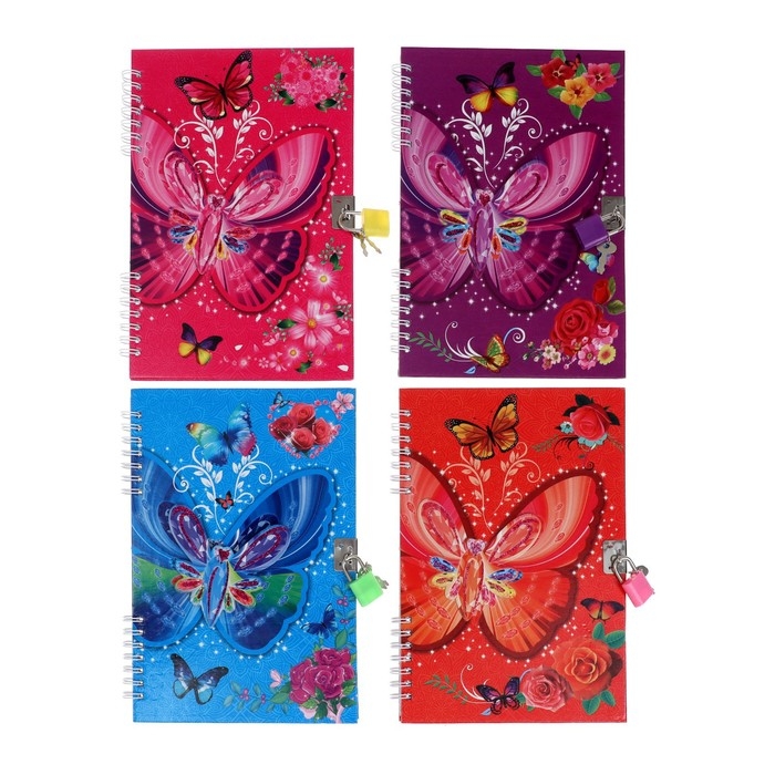 Записная книжка подарочная на замочке, А5, 50 листов, линия, "Бабочка", МИКС