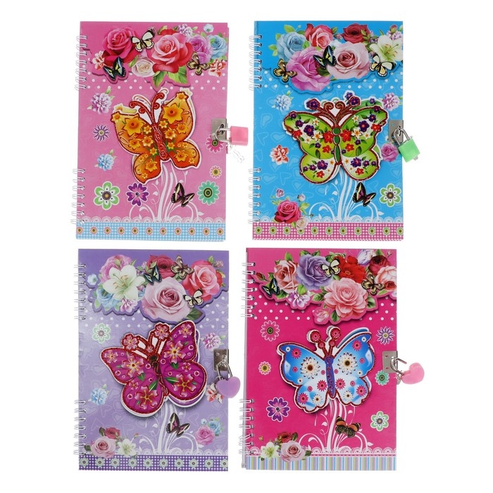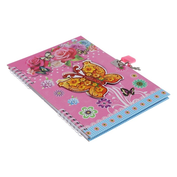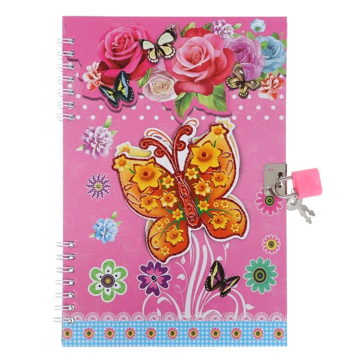 Записная книжка подарочная на замочке, А5, 50 листов, линия, "Бабочка", МИКС