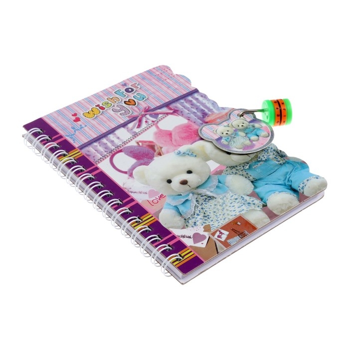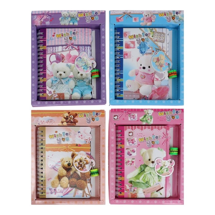 Записная книжка в подарочной коробке, на замочке, А6, 50 листов, линия "Мишка", МИКС