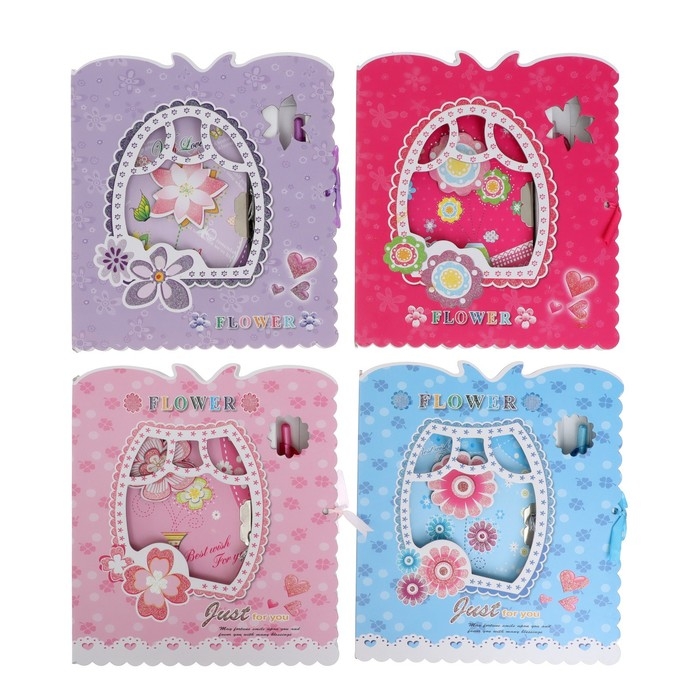 Записная книжка в подарочной коробке, на замочке, А6, 50 листов, линия, "Окошко", МИКС