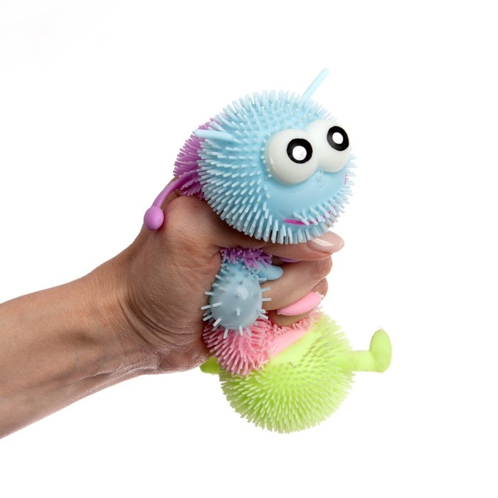 Яркая ёжка «Гусеница» — мягкая и приятная на ощупь игрушка, которая поможет снять стресс и расслабиться. Сжимайте игрушку и она будет забавно менять свою форму. Если потрясти гусеницу, то она начнёт светиться!