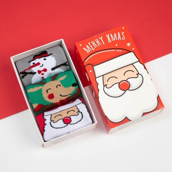 Новый год. Набор детских новогодних носков KAFTAN «Дед Мороз» 3 пары, размер 16-18