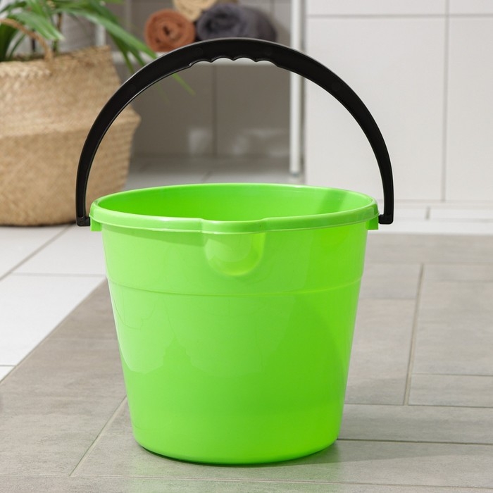 Ведро со сливом круглое, 10 л, d=28 см, h=24 см, цвет зелёный