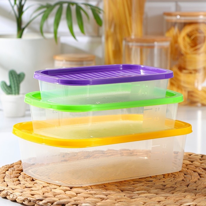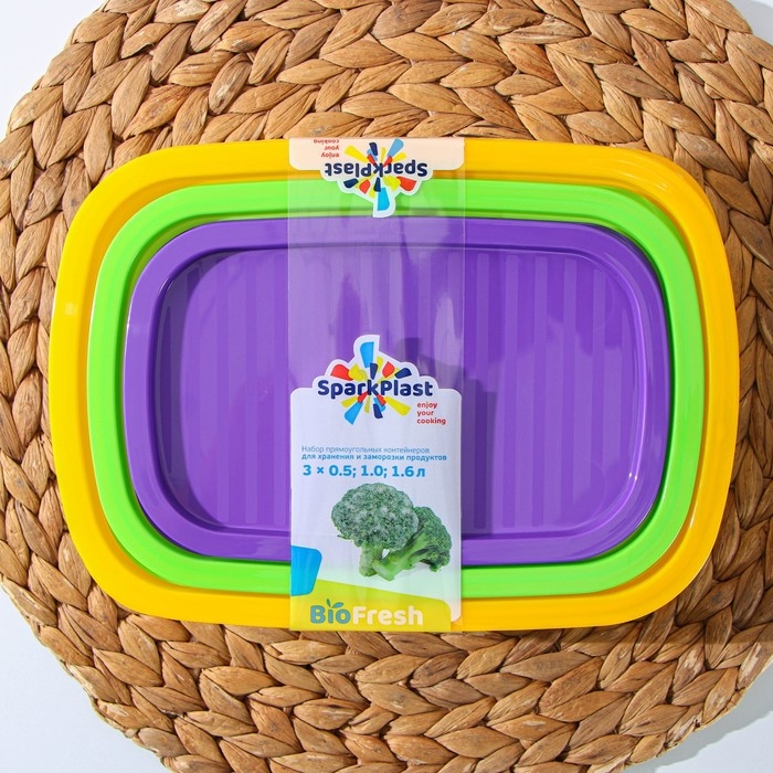 Набор пищевых контейнеров «BioFresh», 3 шт: 500 мл, 1 л, 1.6 л, цвет прозрачный, крышки МИКС