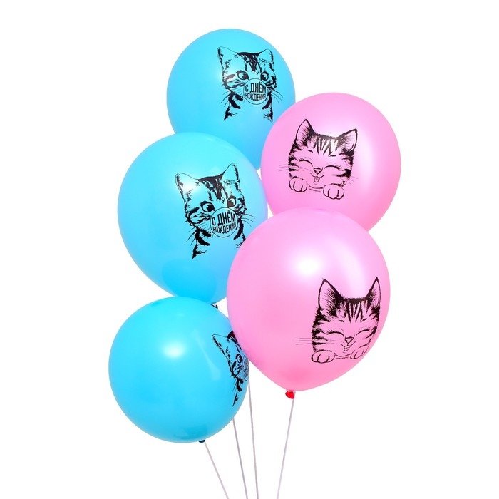 Воздушный шар латексный 12" «Котик», 5 шт.