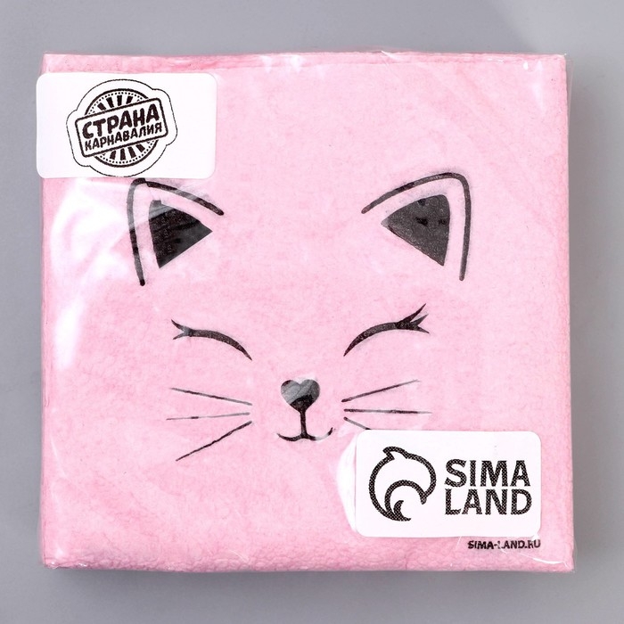 Салфетки бумажные однослойные «Кошечка», 24 × 24 см, в наборе 20 шт.