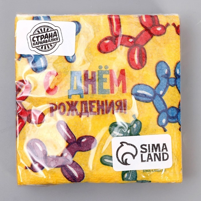Салфетки бумажные однослойные «С днём рождения. Весёлые фигуры», 24 × 24 см, 20 шт.