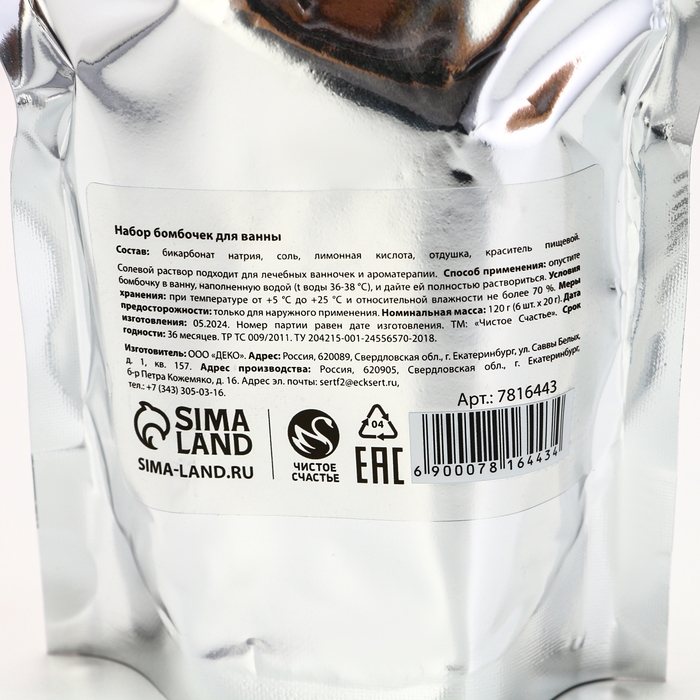 Подарочный набор косметики «С Новым Годом!», бомбочки для ванны, 6 х 20 г, аромат яблока, ЧИСТОЕ СЧАСТЬЕ