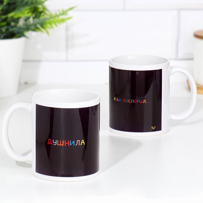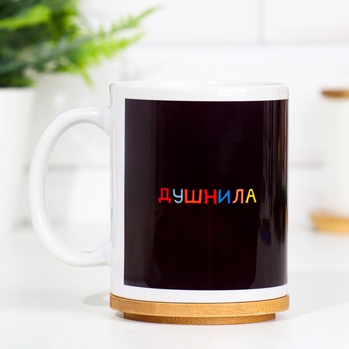 Кружка изготовлена из керамики. Рисунок нанесён методом сублимации, при котором краска проникает в верхний слой изделия, поэтому изображение получается стойким.