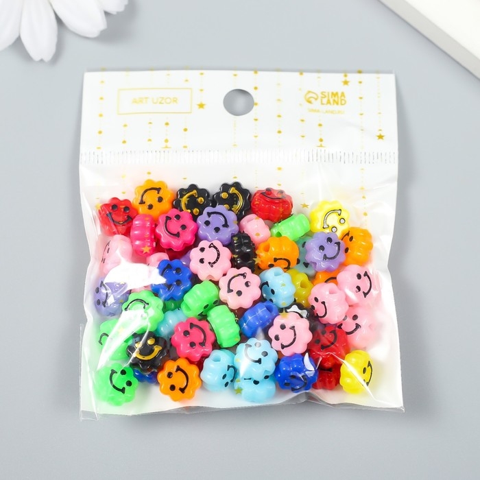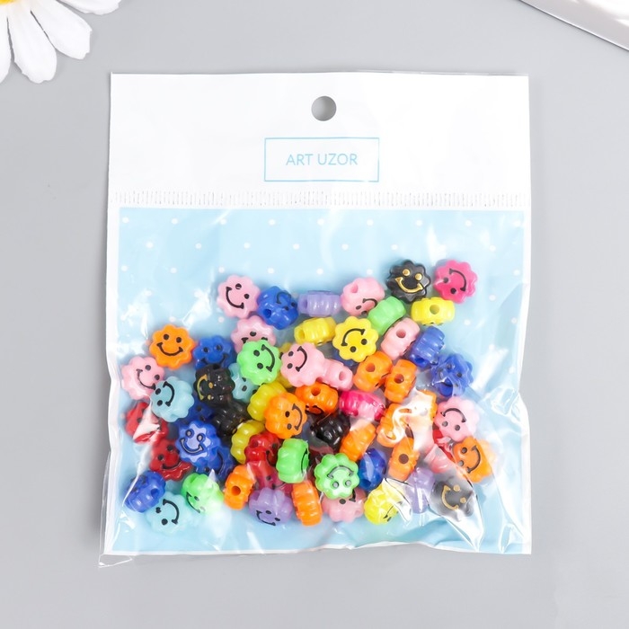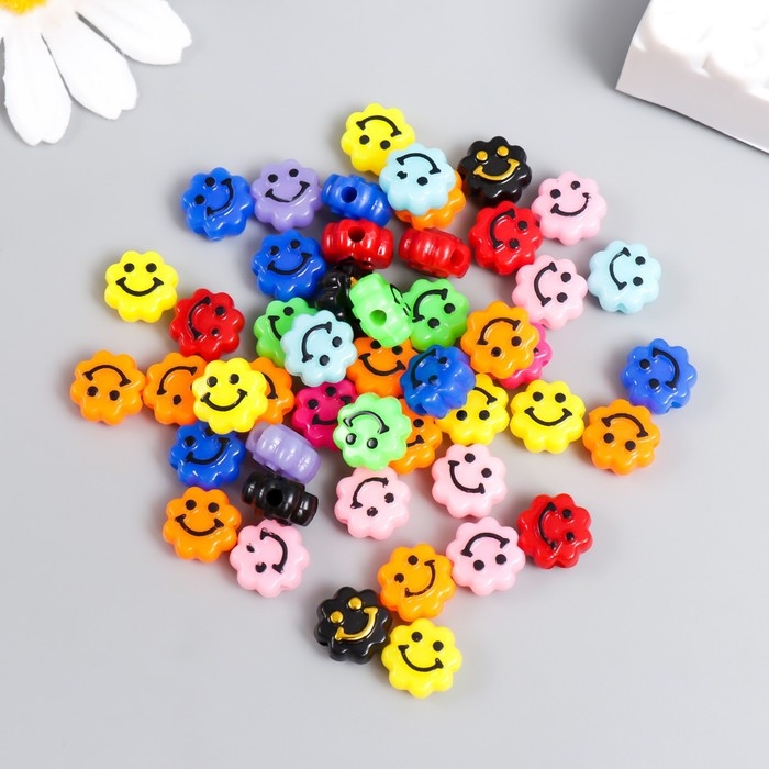 Бусины для творчества пластик "Смайлик на цветочке" яркие набор 20 гр 0,6х1х1 см