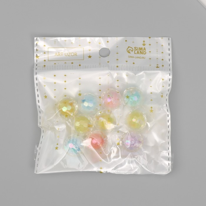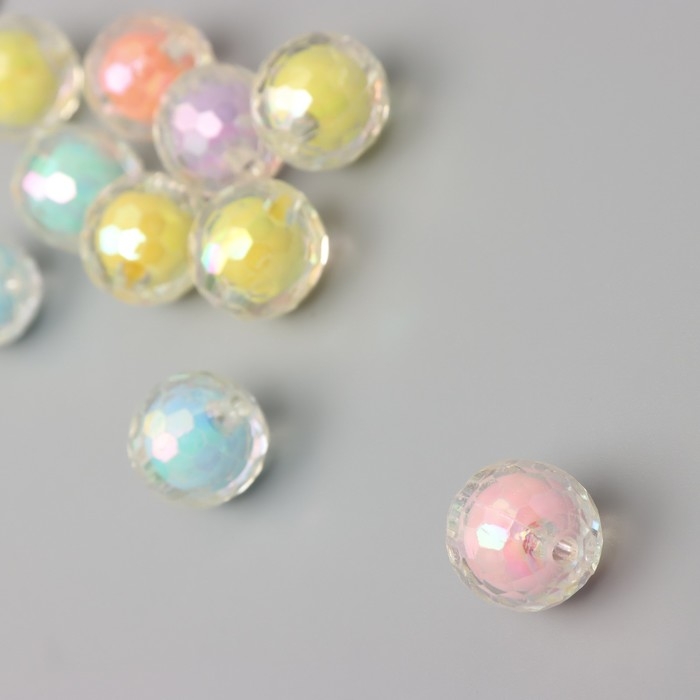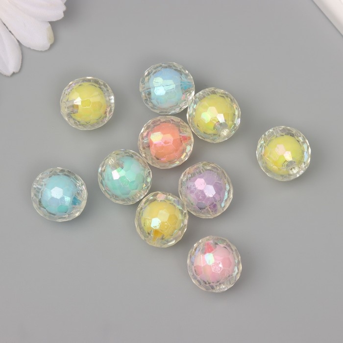 Бусины акрил "Шарик - грани перламутра" набор 10 шт разноцветные 1,6х1,6х1,6 см