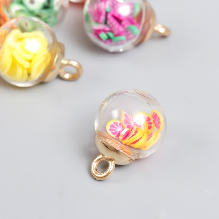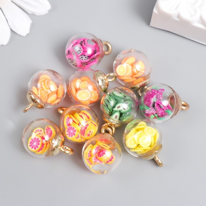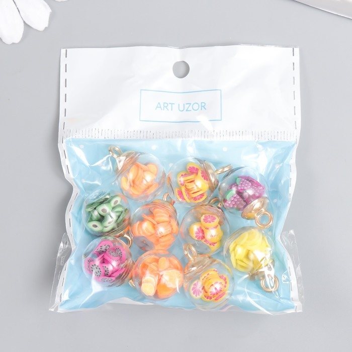 Подвеска для творчества стекло, пластик "Фрукты в шаре" набор 10 шт 2х1,8 см
