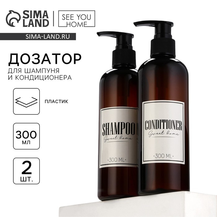 Дозатор для шампуня и кондиционера Sweet home, 300 мл., набор 2 шт.