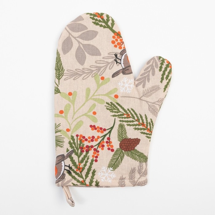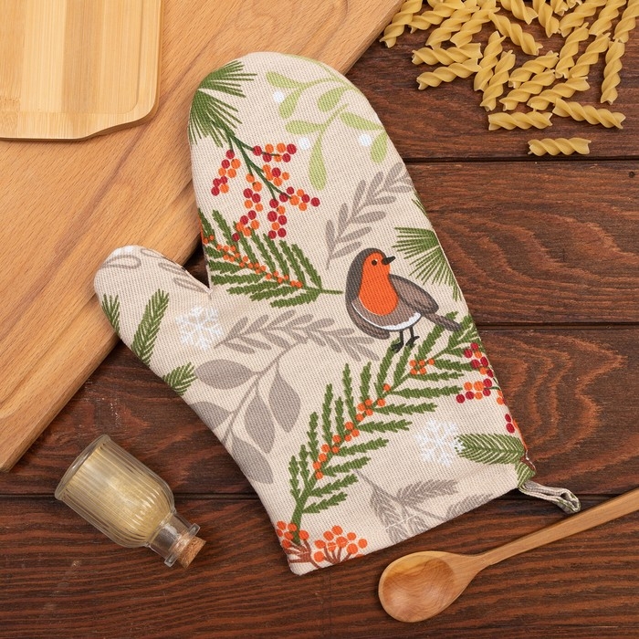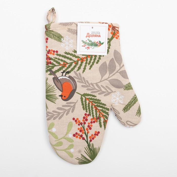 Новый год. Варежка-прихватка Доляна Bullfinch 20х27 см, 100% хлопок, ватин 250г/м2
