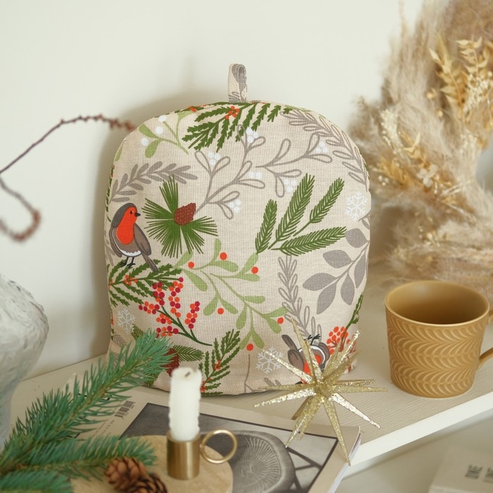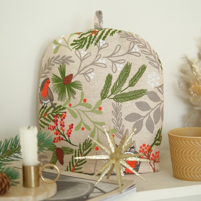 Новый год.Грелка на чайник Доляна Bullfinch 28х28 см, 100% хл, рогожка 164 г/м2