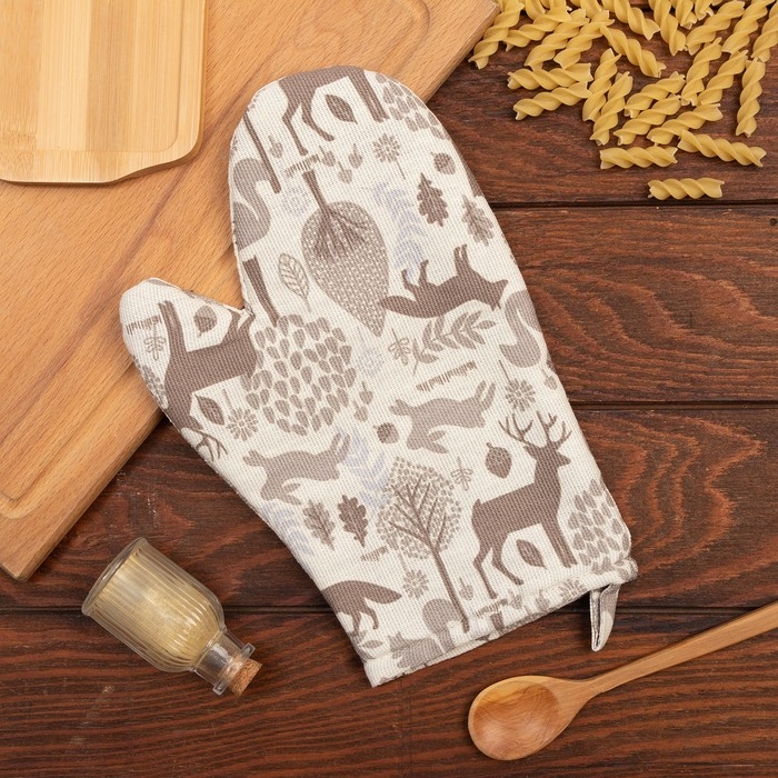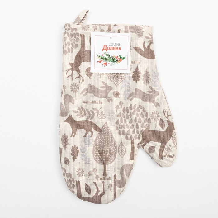 Новый год.Варежка-прихватка Доляна Forest dwellers 20х27 см, 100% хл, ватин 250г/м2