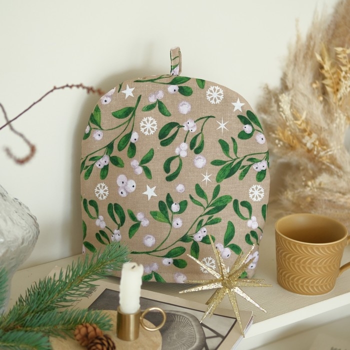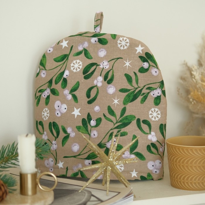 Новый год.Грелка на чайник Доляна Frosty berries 28х28 см, 100% хл, рогожка 164 г/м2