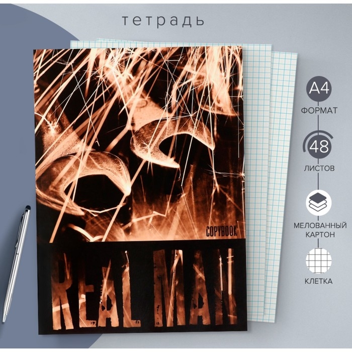 Тетрадь А4, 48 листов в клетку Real Man, обложка мелованный картон, блок офсет
