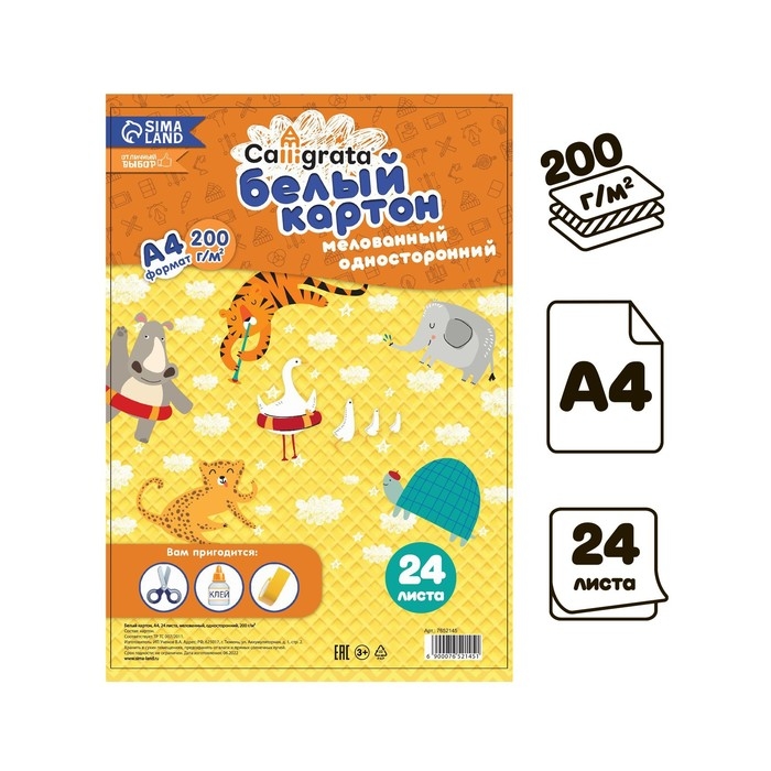 Картон белый А4, 24 листа Calligrata, двойное мелование, 200 г/м2