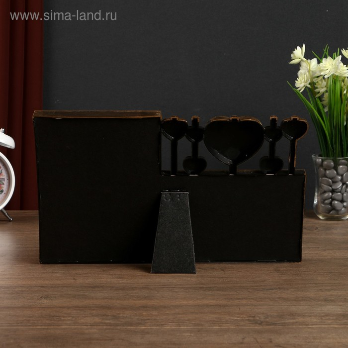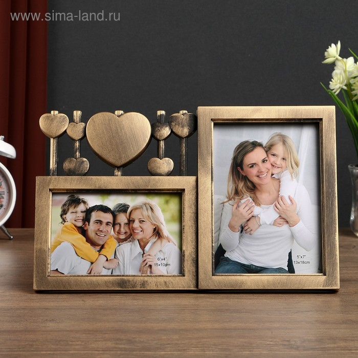 Фоторамка пластик на 2 фото 10х15, 13х18 см "Сердечки на ниточках" тём. золото 20,5х33х2см