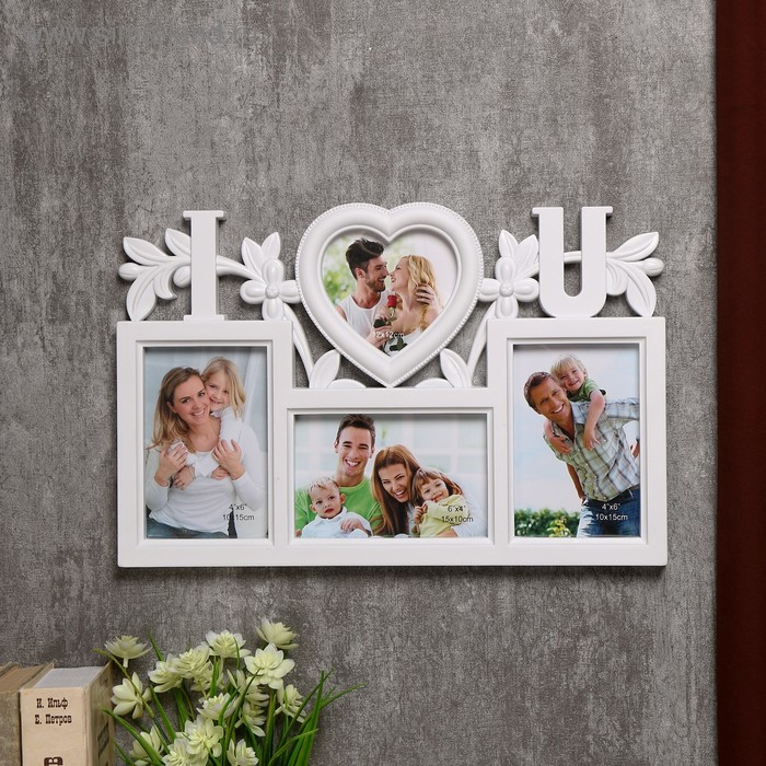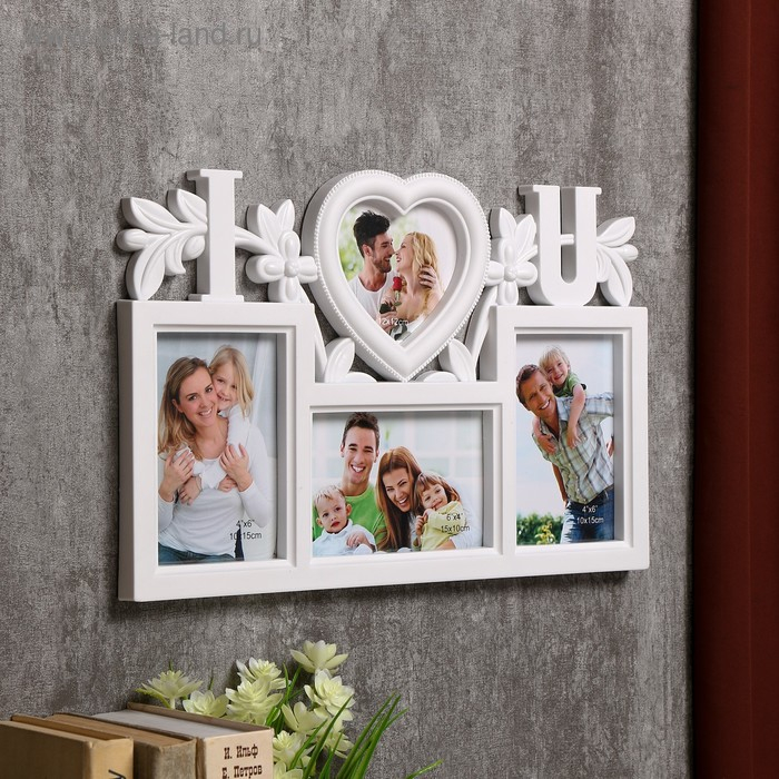 Фоторамка пластик на 4 фото 10х10, 10х15 см "Я люблю тебя" белая 26,5х40х2,5 см