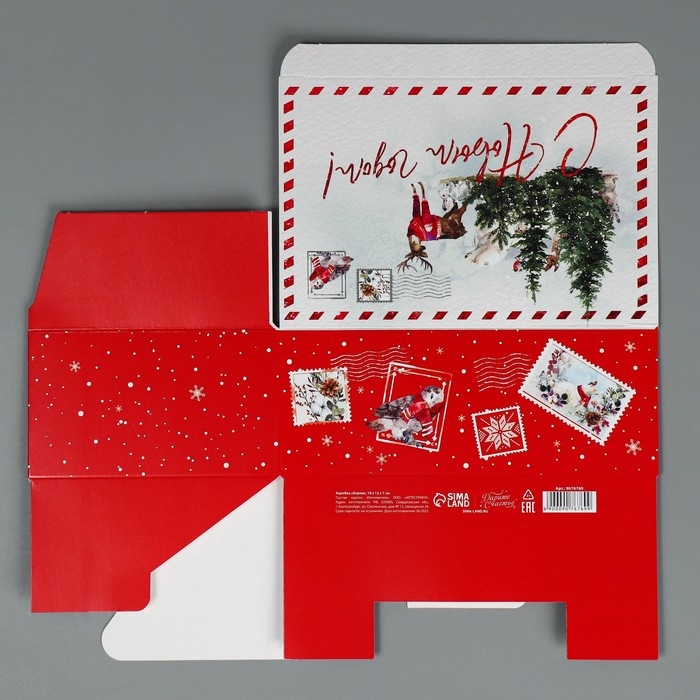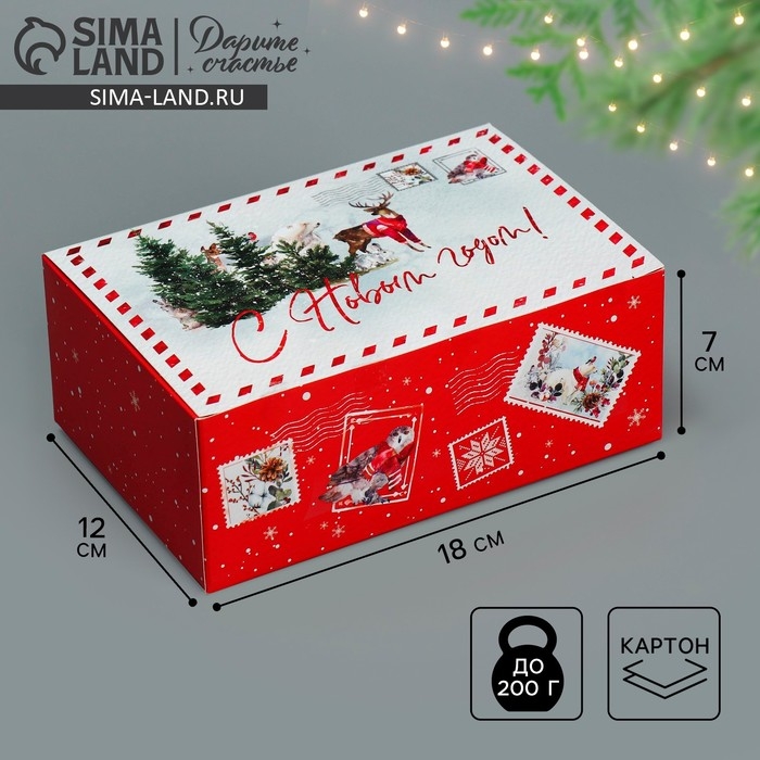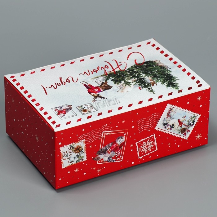 Подарочная коробка складная, новогодняя«Новогодняя акварель», 18 х 12 х 7 см, Новый год