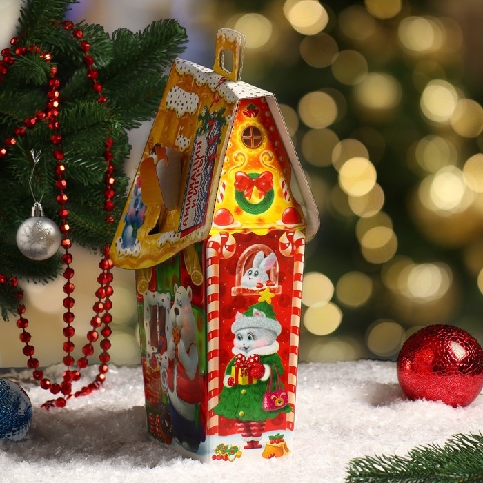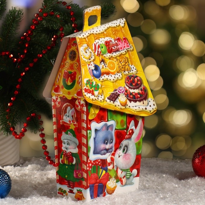 Новый год. Подарочная коробка "Мармелад", дом сказочный, 14,3 х 7,2 х 28,5 см.